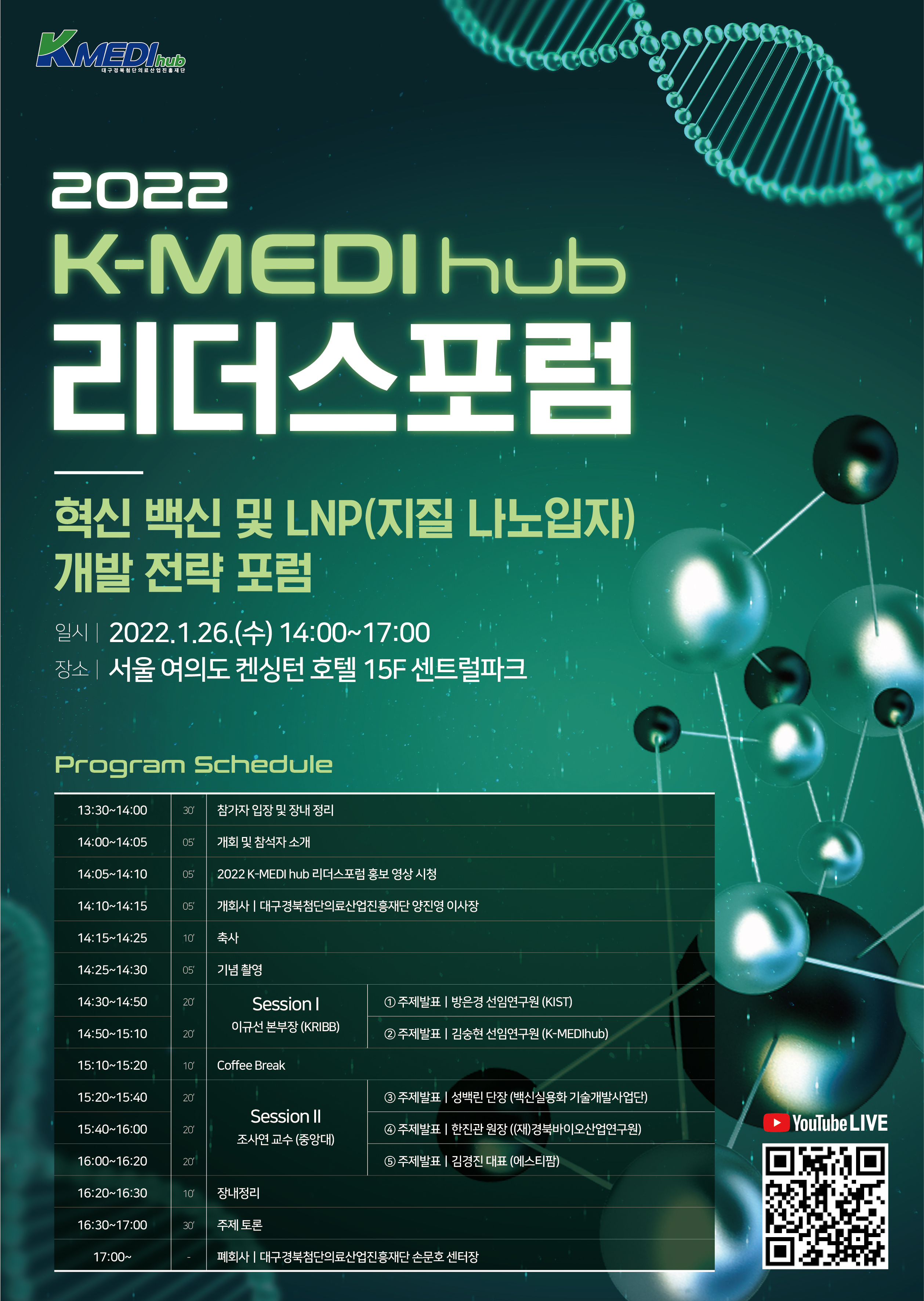 □ 행사명 : 2022 K-MEDIhub 리더스포럼 (혁신백신 및 LNP (지질나노입자) 개발전략포럼)