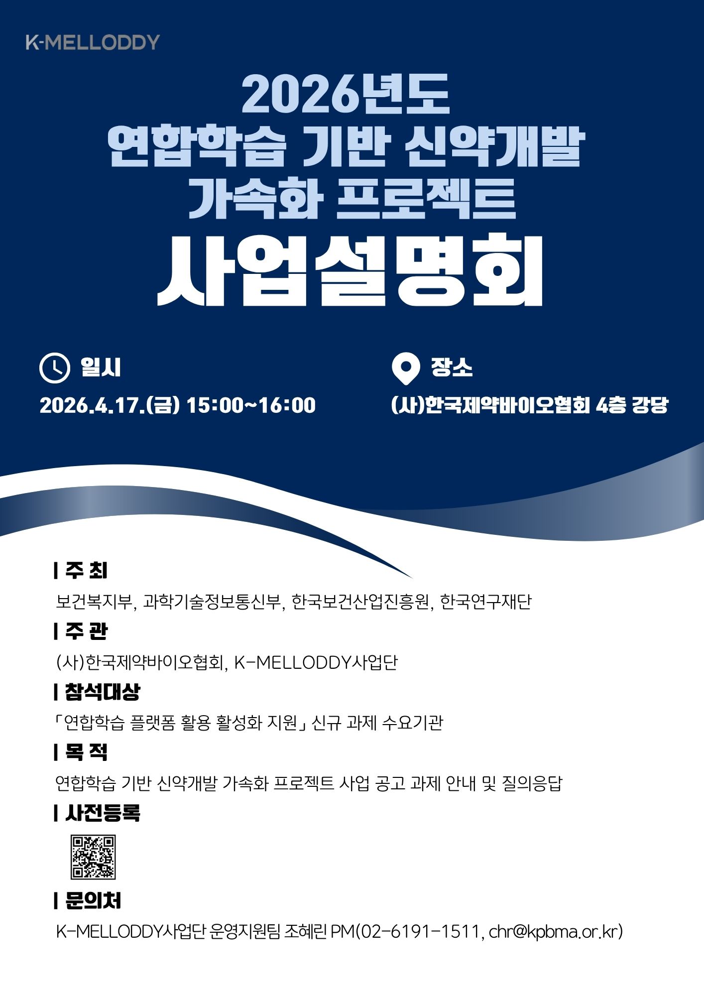 [기타] K-MELLODDY사업단 「2026년도 연합학습 기반 신약개발 가속화 프로젝트 사업」 신규지원 대상과제 공고 안내