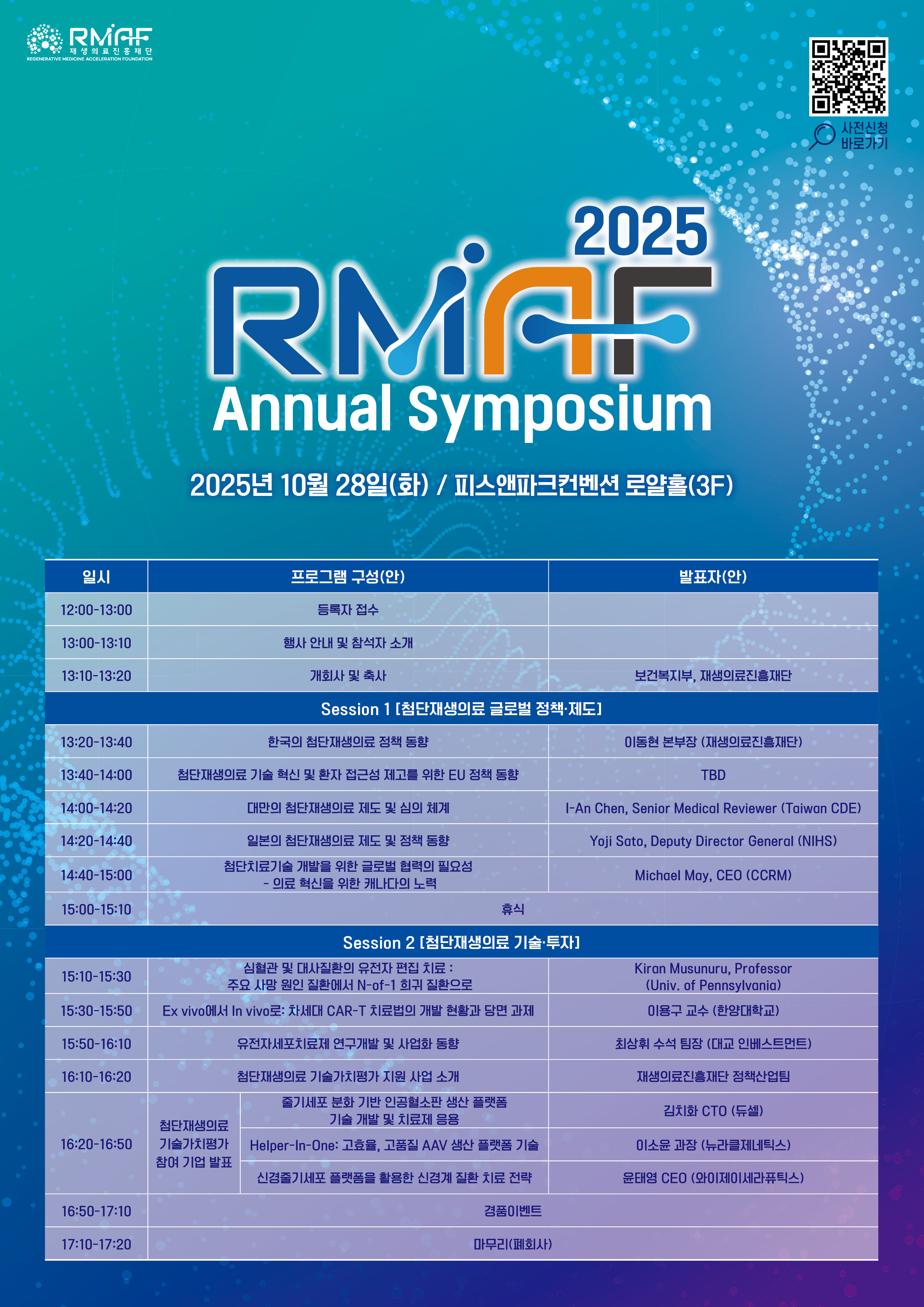 [기타] 재생의료진흥재단 2025 RMAF Annual Symposium 개최 안내(10/28, 피스앤파크 컨벤션)