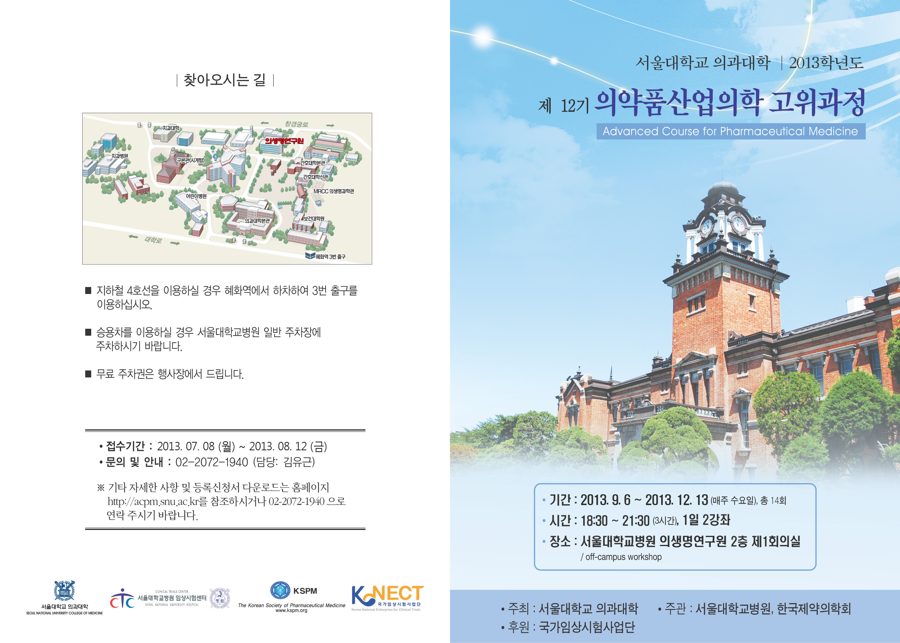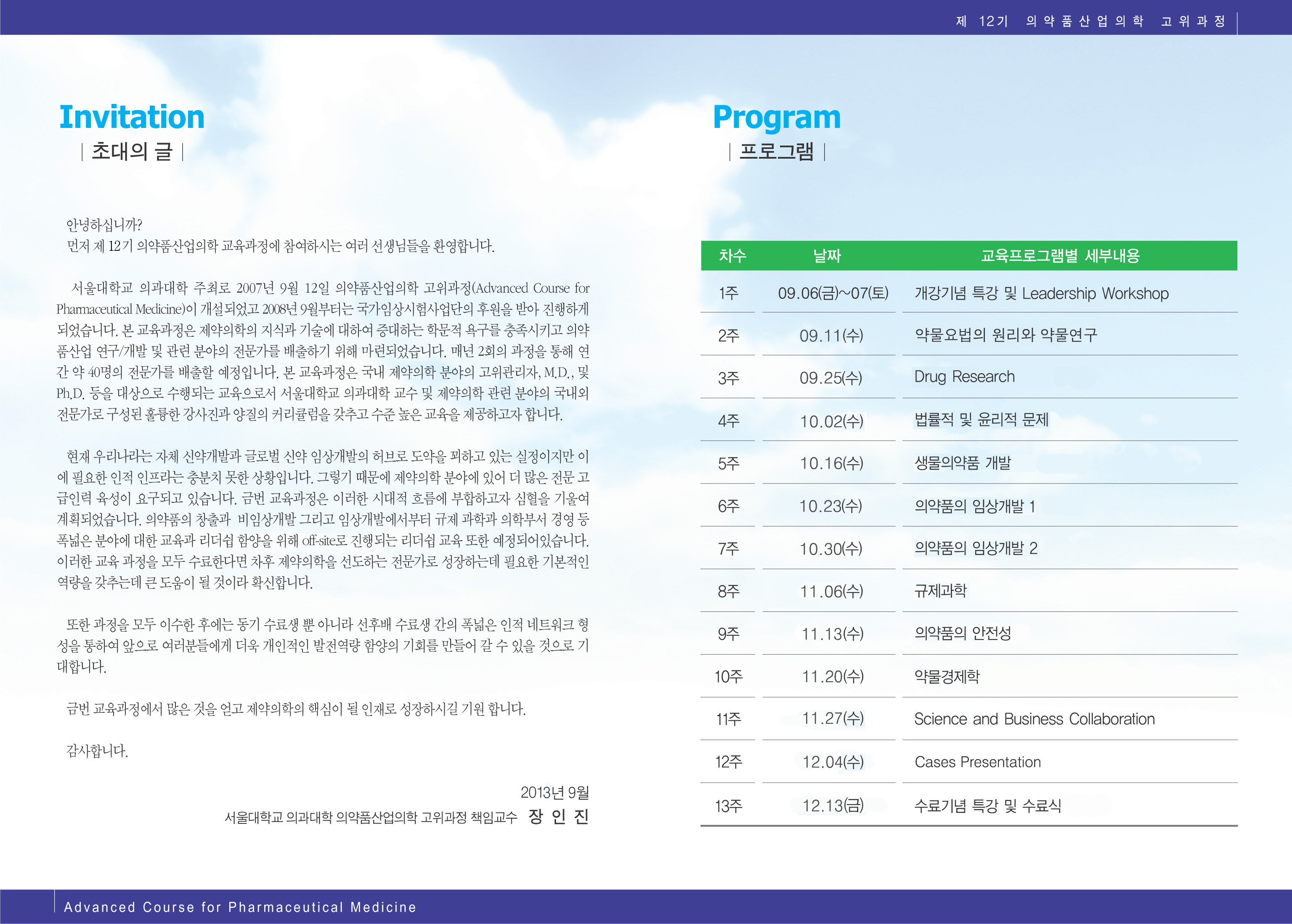 보건복지부 지정 서울대학교 의과대학 2013학년도 제 12기 의약품산업의학 고위과정 (Advanced Course for Pharmaceutical Medicine)