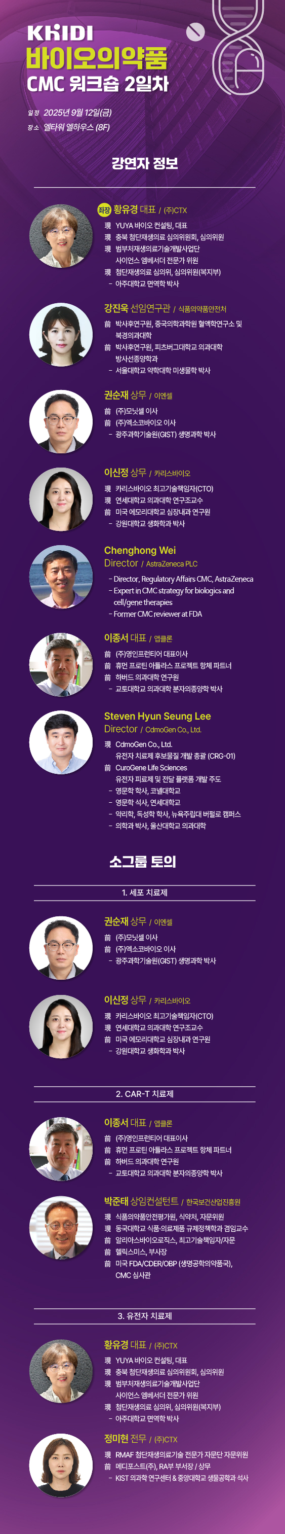 [기타] 한국보건산업진흥원 바이오의약품 CMC 워크숍 개최 안내(9/11~12, 엘타워)